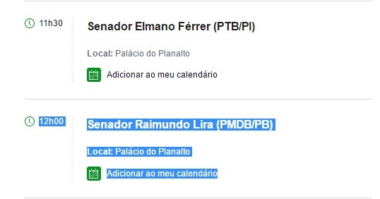 Veja abaixo a agenda das audiências desta quarta da Presidência da República: